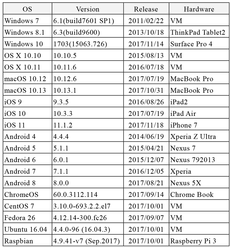 クライアントOS検証に用いたクライアントOSのバージョン情報を表4にそれぞれ記す.参考までに,各OSのリリース日とハードウェア情報も記載している.検証を実施する際には,ルータにおける設定を変更した後,下記の手順にてクライアントOSの挙動データを取得した.