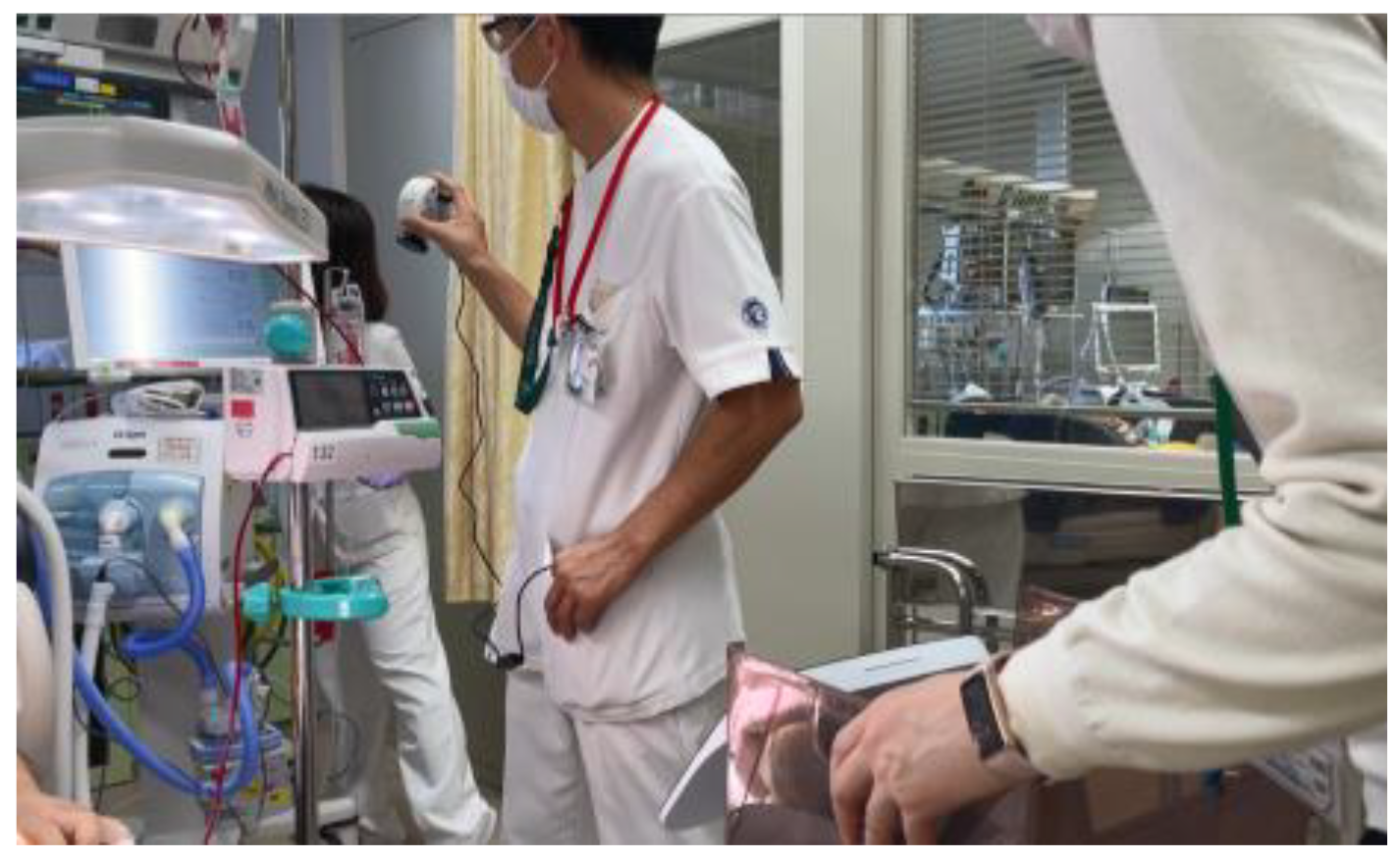現場の看護師との通話についても,temiのスピーカおよび医師側のノートPCともにコミュニケーションに関する不都合は発生しなかったが,病室内はさまざまな機材があり,temiを追従モードでエスコートするのは難しい状況であった.
