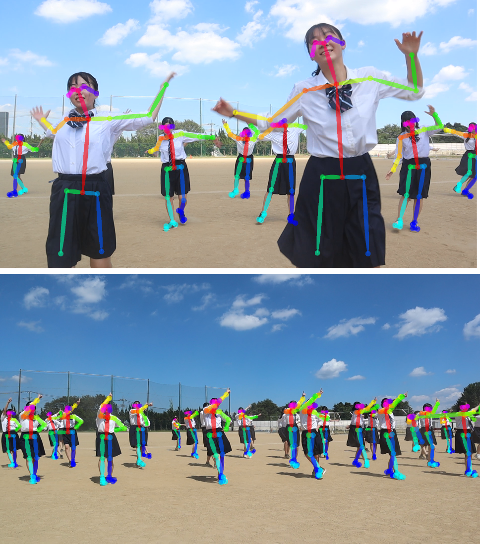 このように,スポーツ・文化を通した教育活動において,最先端のコンピュータビジョン技術を活用した映像生成手法を提案し,高校生がダンスONEプロジェクトへ取り組む活動をサポートすることで,探求学習科目「総合的な探究の時間」と同様の経験が可能になる.このように,探求学習科目「総合的な探究の時間」と同様の取り組みを部活動の一環とすることで,新たな教育モデルを実践した.