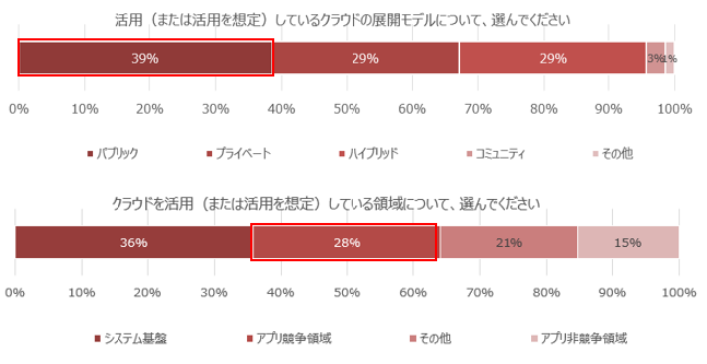 活用領域としては約4割がシステム基盤に活用している一方,3割近くが競争領域においても積極的にクラウドの活用を推進している結果となっている.