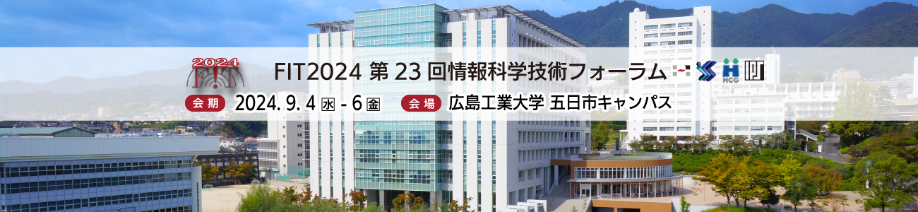 名称: 第23回情報科学技術フォーラム(FIT2024) 大会会期: 2024年9月4日(水)~9月6日(金)会場: 広島工業大学 五日市キャンパス(広島県広島市佐伯区三宅2丁目1−1)ハイブリッド開催 主催: 一般社団法人電子情報通信学会