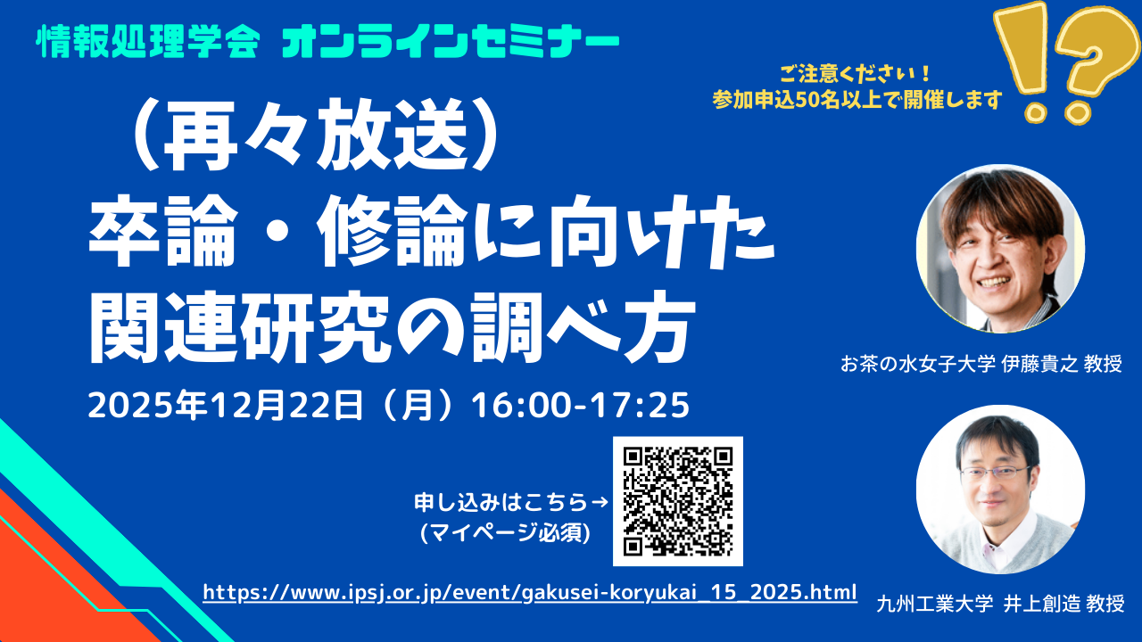 ○イベント:(再々放送)卒論・修論に向けた関連研究の調べ方